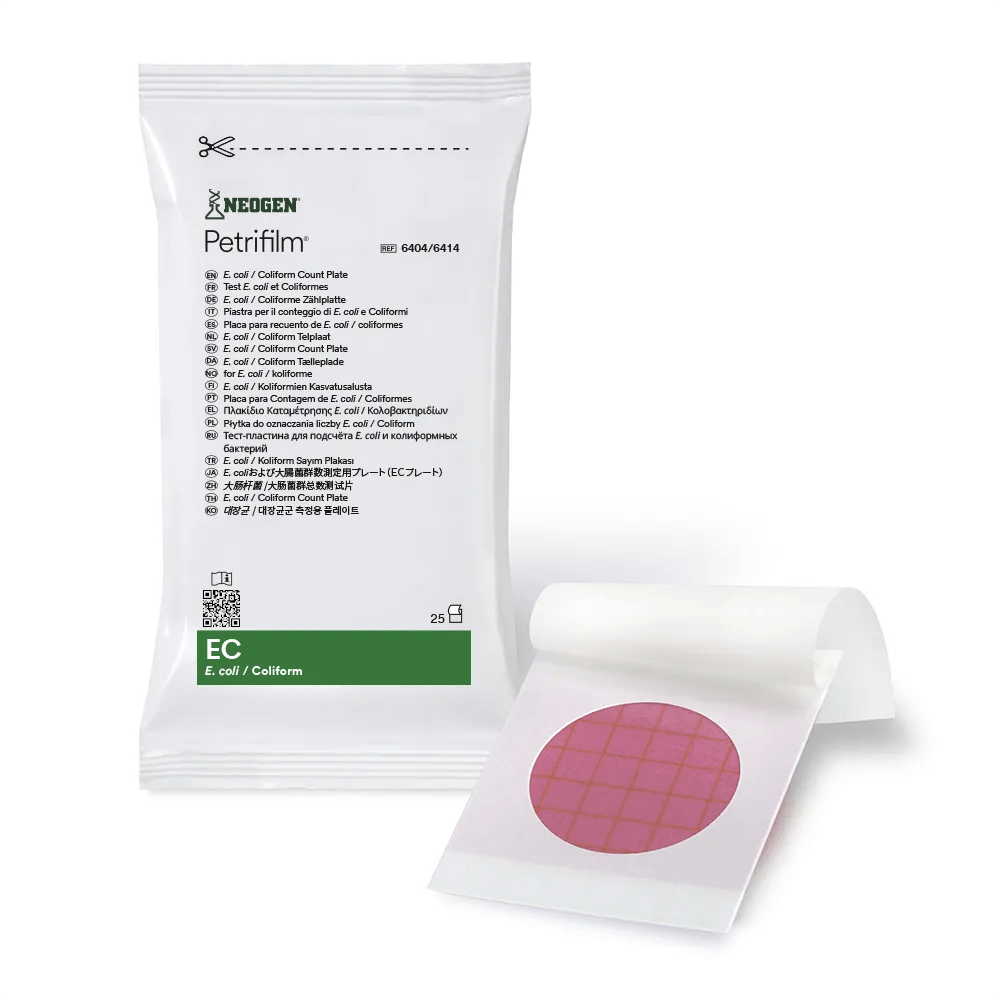 Neogen® Petrifilm® E. coli/Coliform Count Plate er et klart kulturmediumsystem som inneholder modifiserte Violet Red Bile (VRB) næringsstoffer, et kaldvannløselig geleringsmiddel, en indikator for glukuronidaseaktivitet, 5-bromo-4-kloro-3-indolyl-D-glukuronid (BCIG), og en tetrazoliumindikator som letter koloniantall. Neogen® Petrifilm E. coli/Coliform Count Plates brukes til å telle Escherichia coli (E. coli) og coliformer i mat- og drikkevareindustrien. Coliformer defineres ikke av taksonomi, men snarere av deres biokjemiske egenskaper.