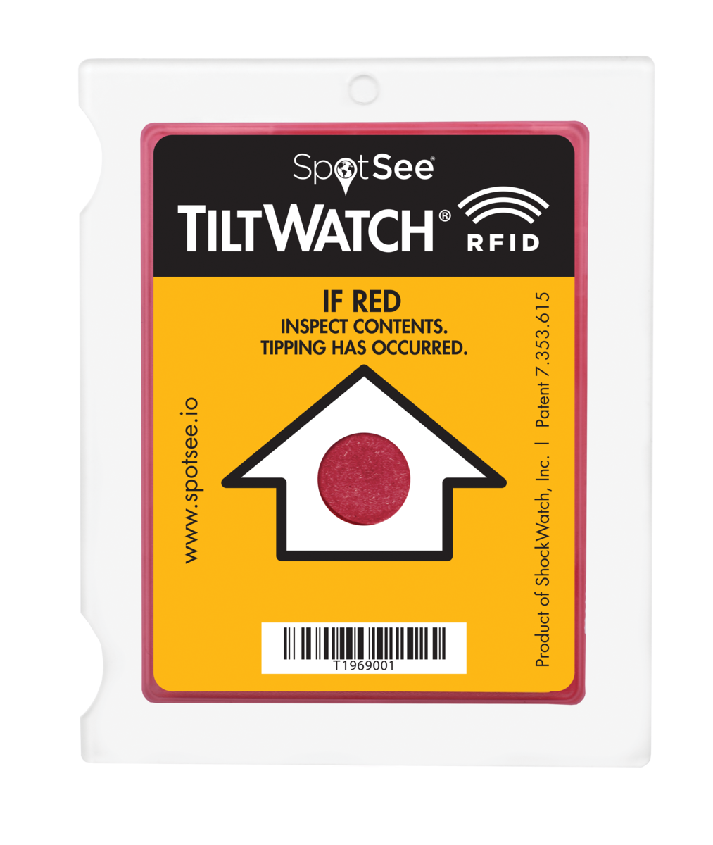 TiltWatch RFID er en velteindikator som tydeliggjør ansvaret for å holde varer i riktig posisjon gjennom hele håndterings- og transportkjeden. SpotSee TiltWatch® RFID Indicator reduserer typisk skader som skyldes feilhåndtering med 40–60%. Med integrert RFID-teknologi varsler TiltWatch RFID dersom produktet har blitt vippet, og gjør det mulig å hente inn og registrere disse dataene i lager- eller forsendelsesstyringssystemene deres.